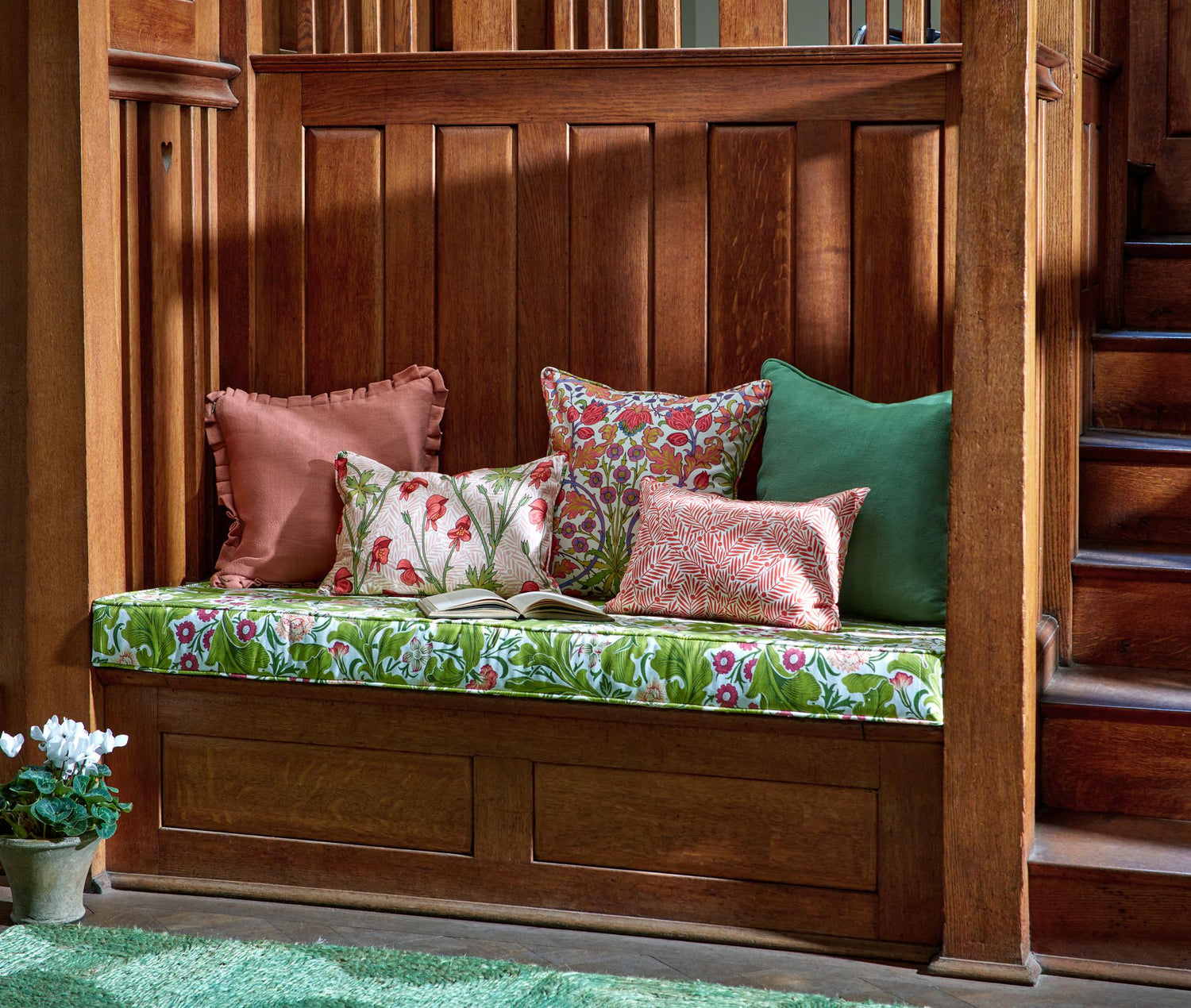 Policy For Morris & Co Leicester Sour Green/Plum Fabric (Morris & Co)