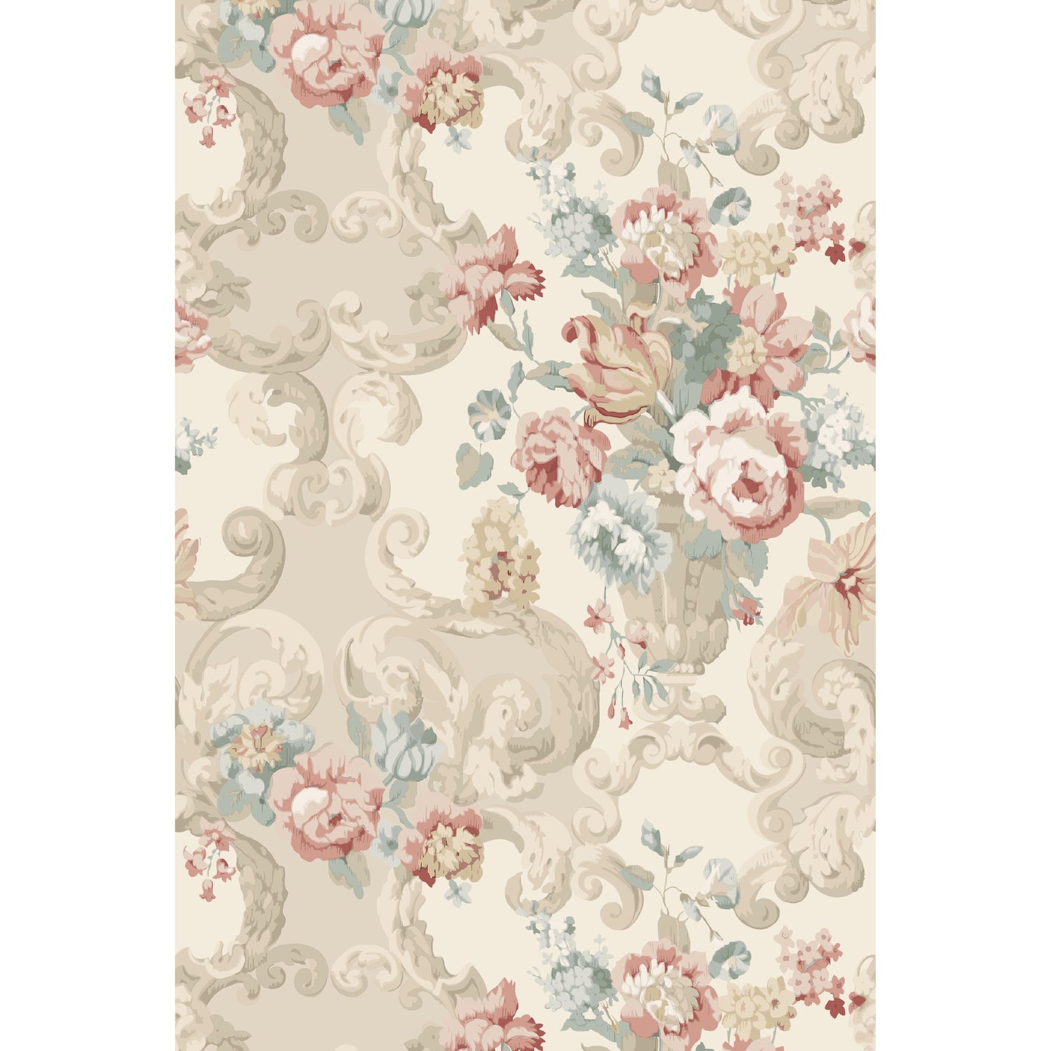 International For Mulberry Floral Rococo Lovat/Red Wallpaper (Mulberry)