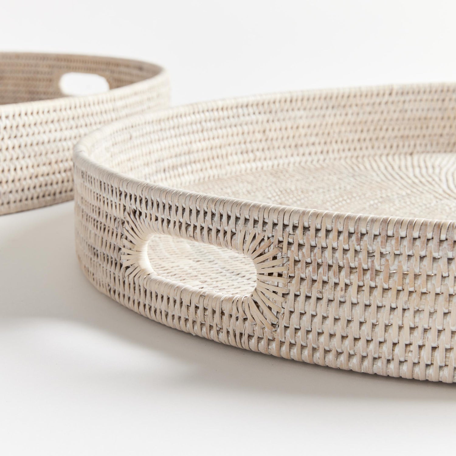International For Napa Whitewash Burma Rattan Round Ottoman Trays Large, Set Of 2 (Napa)