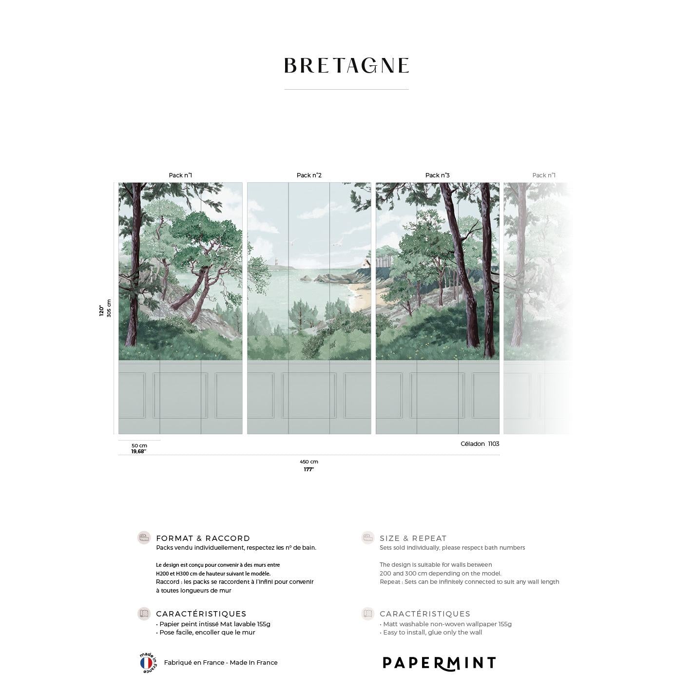 International For Papermint Bretagne Chair Rail With Faux Wainscoting Pack 1, 2 & 3 In Gray Wall Mural (Papermint)