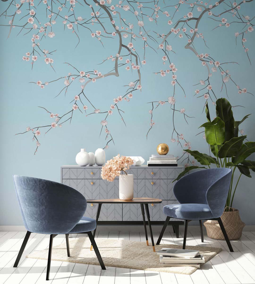 International For Papermint Sakura Pack 1 & 2 In Blue Wall Mural (Papermint)