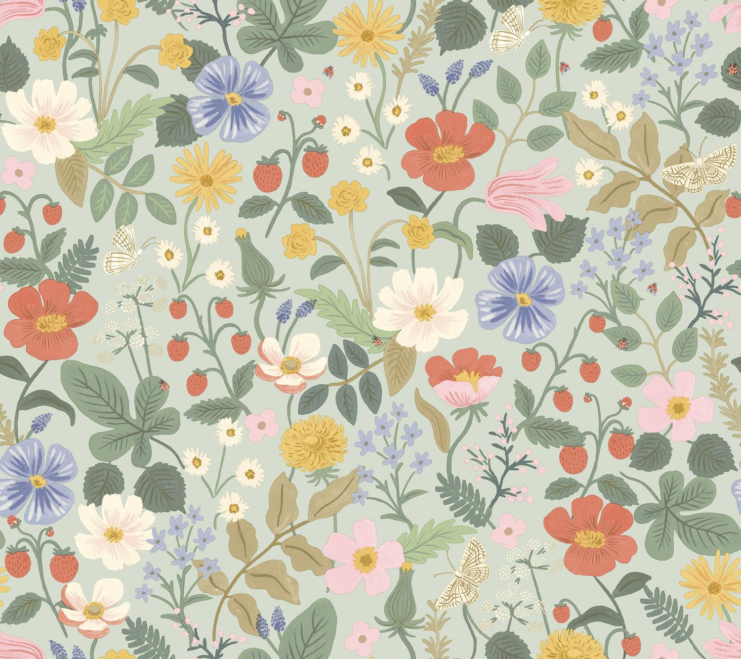 International For Rifle Paper Co. Strawberry Fields Green & Pink Wallpaper (Rifle Paper Co.)
