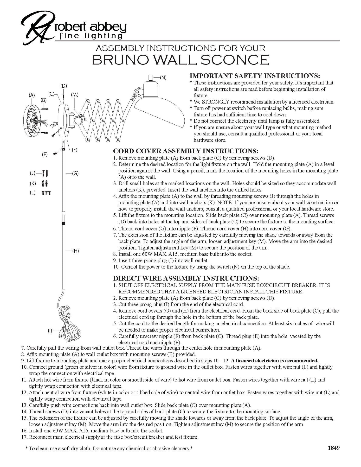 Shipping For Robert Abbey (1849) 8" X 10.5" Bruno Wall Swinger (Robert Abbey)