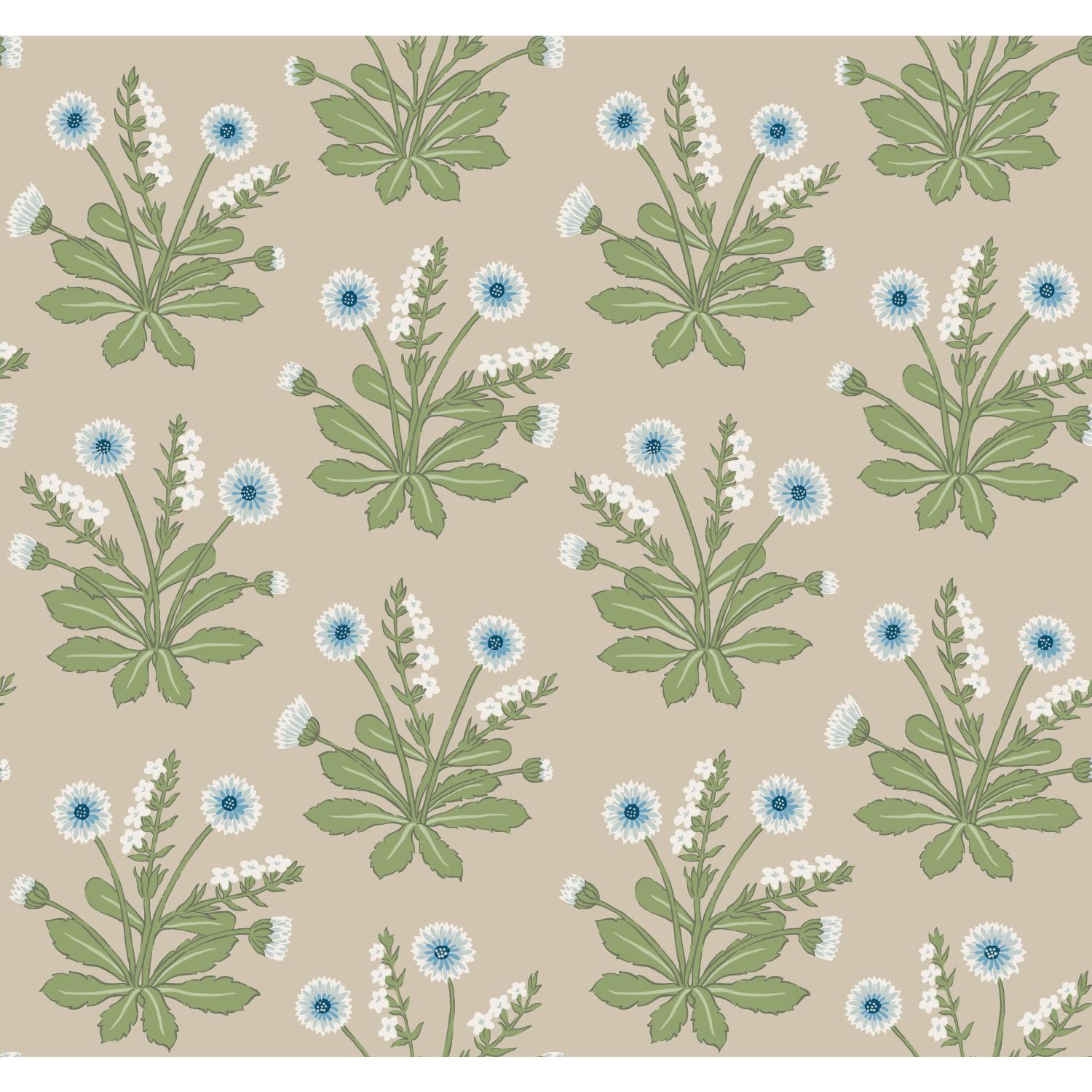 International For Ronald Redding Designs Meadow Flowers Linen & Blue Wallpaper (Ronald Redding Designs)