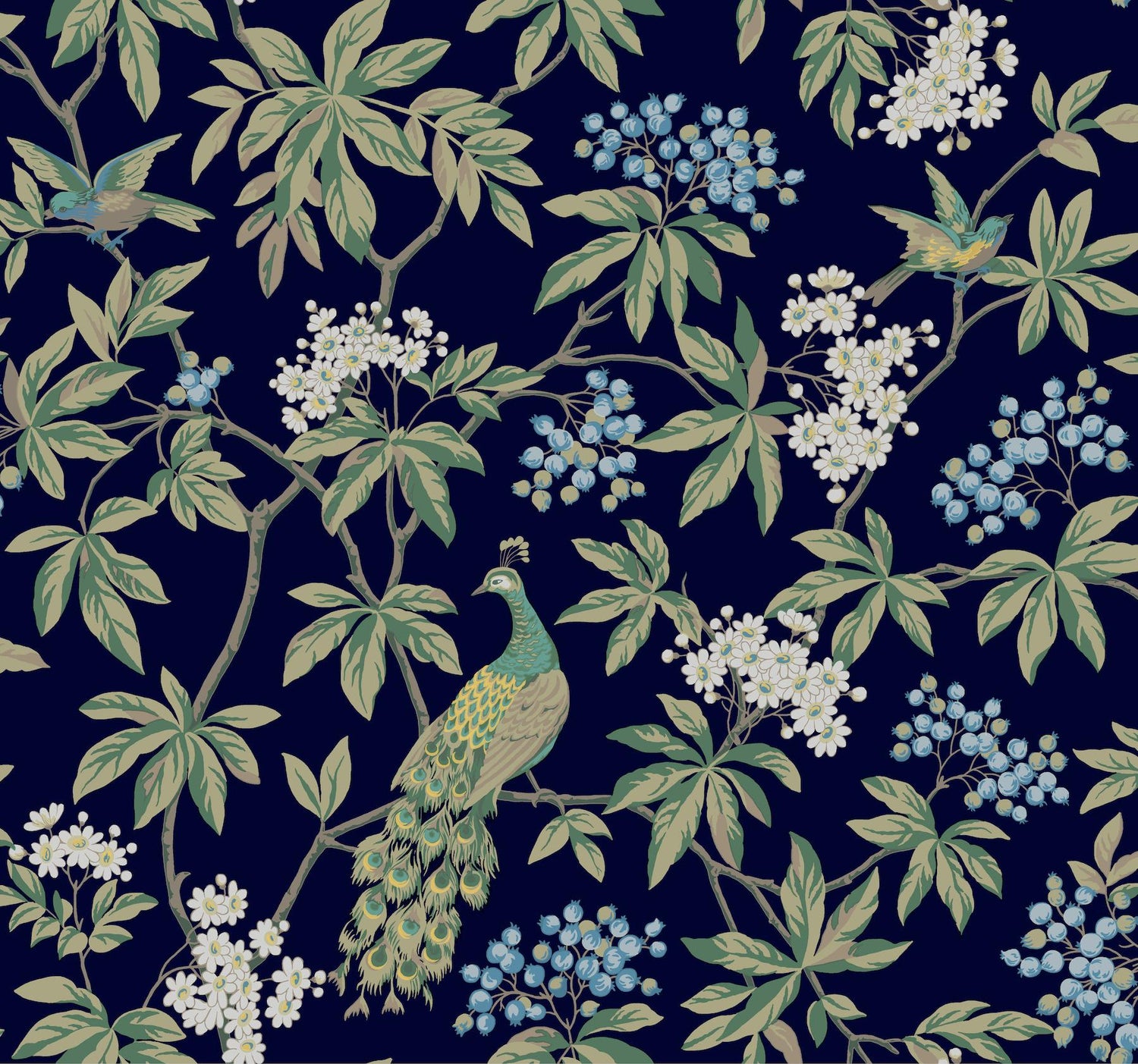 International For Ronald Redding Designs Peacock Estate Navy Wallpaper (Ronald Redding Designs)