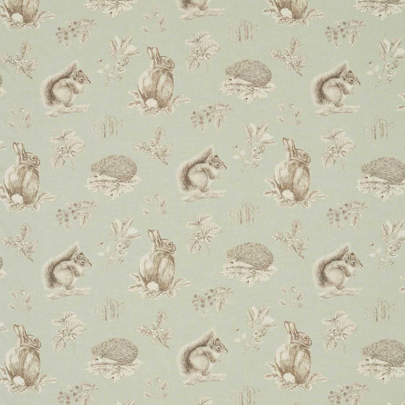 International For Sanderson Squirrel & Hedgehog Seaspray/Charcoal Fabric (Sanderson)