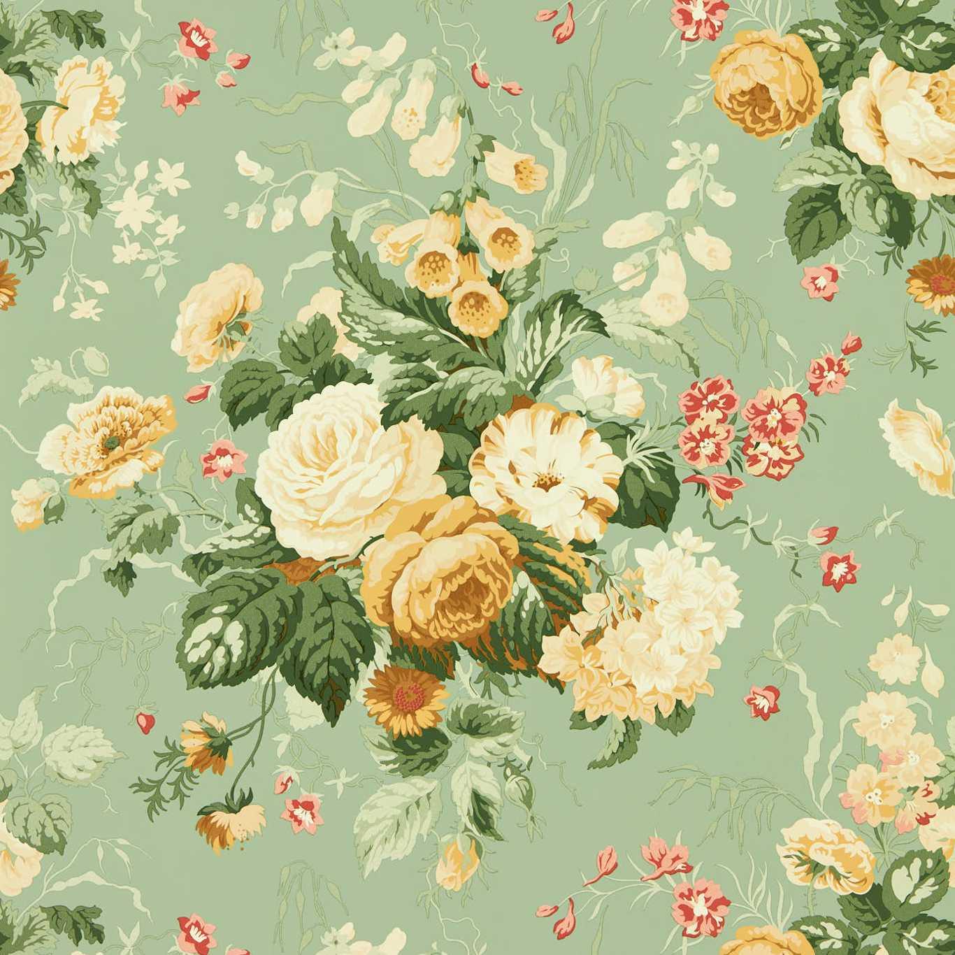 International For Sanderson Stapleton Park Sage/Honey Wallpaper (Sanderson)