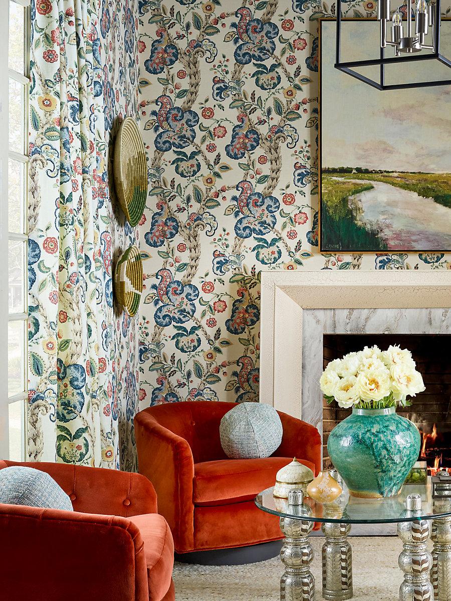 International For Scalamandre Cumbria Hand Block Print Multi On Cream Fabric (Scalamandre)