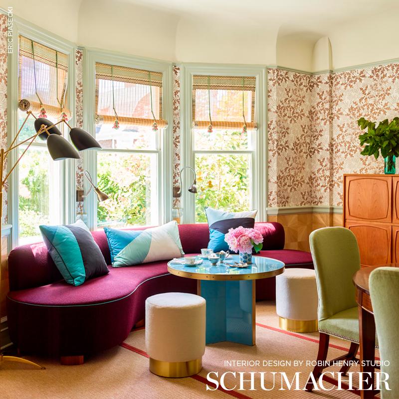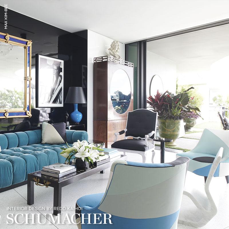 International For Schumacher Cubist Silk Panel Peacock Fabric (Schumacher)