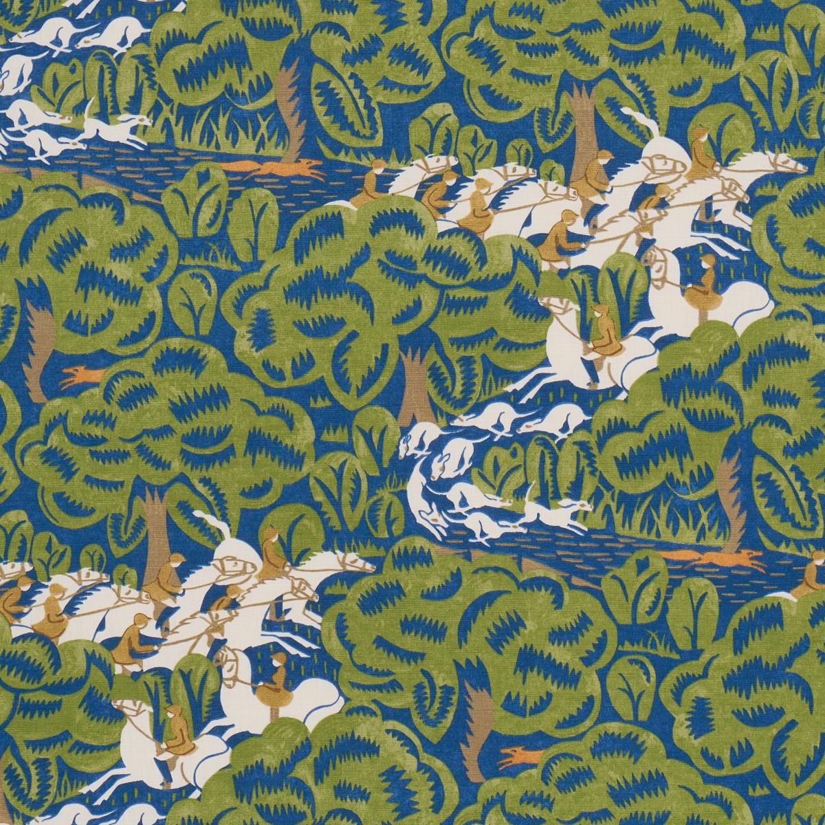 International For Schumacher Margaret Schloeman'S Fox Chase Navy & Green Fabric (Schumacher)
