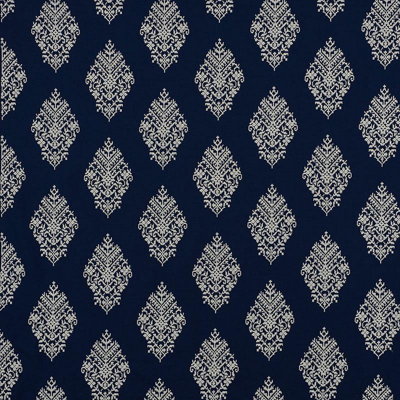 International For Schumacher Zinda Embroidery Navy Fabric (Schumacher)
