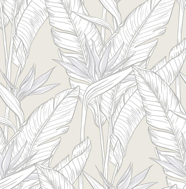 Returns For Seabrook Birds Of Paradise Pearl Grey & Metallic Silver Wallpaper (Seabrook)