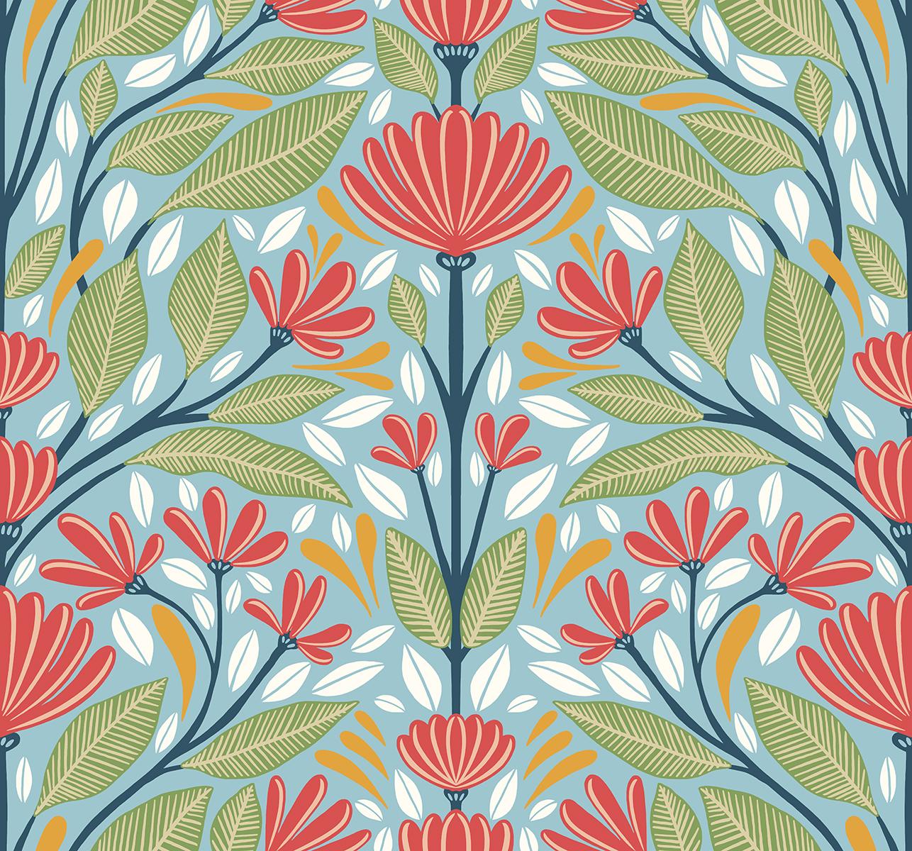 Returns For Seabrook Carmela Folk Floral Summer Garden Wallpaper (Seabrook)
