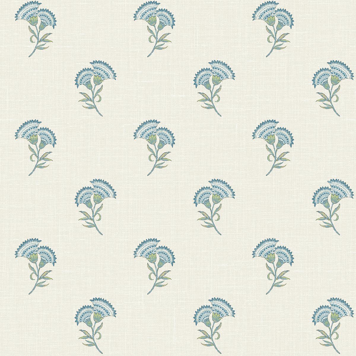 International For Seabrook Lotus Branch Floral Blue Bell & Herb Wallpaper (Seabrook)