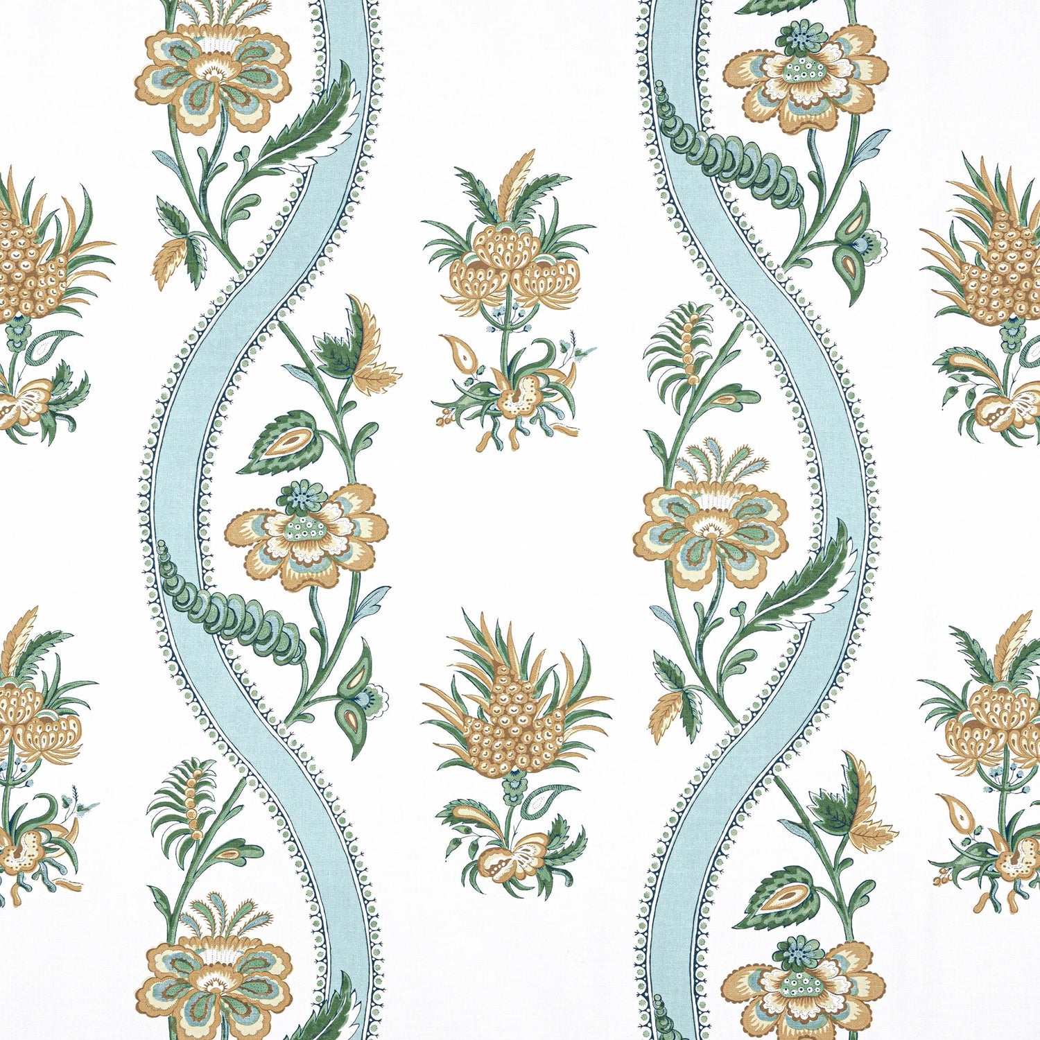 International For Thibaut Ribbon Floral Seaglass And Gold Fabric (Thibaut)