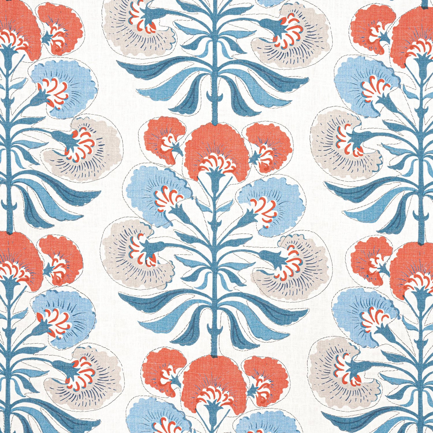 International For Thibaut Tybee Tree French Blue And Coral Fabric (Thibaut)