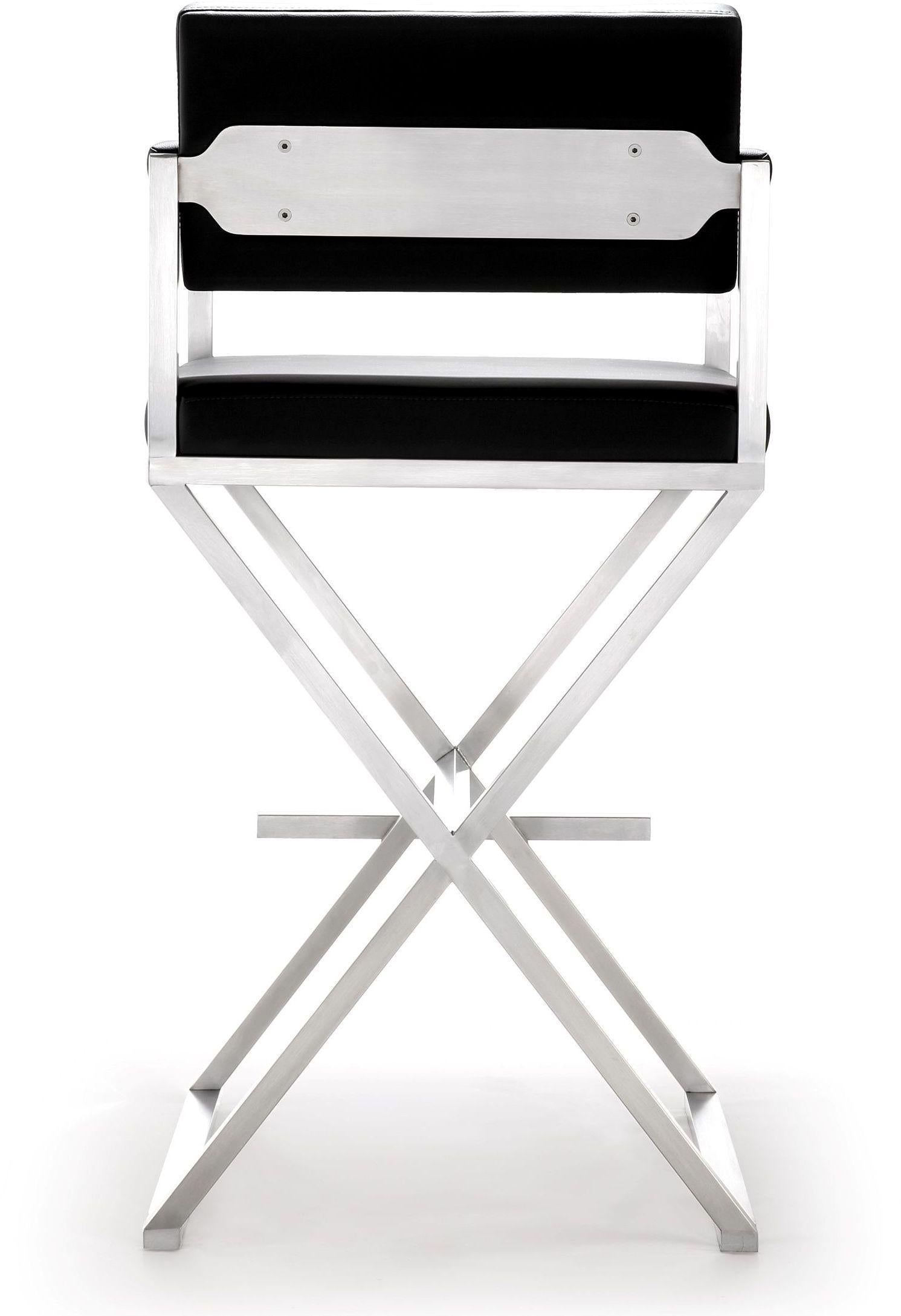 Policy For Tov Director Black Performance Vegan Leather And Stainless Steel Barstool (TOV)
