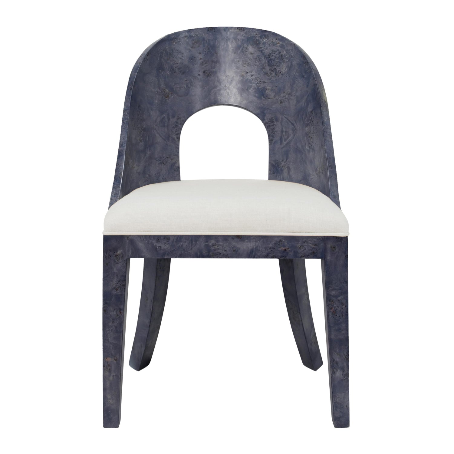 International For Worlds Away Curved Back Wooden Dining Chair In Navy Burl Wood With Permormance White Linen Upholstery (Worlds Away)