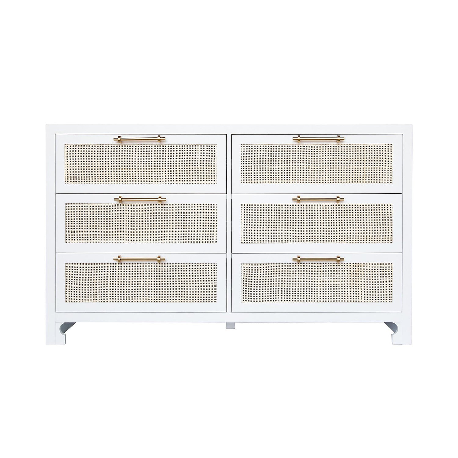 International For Worlds Away Six Drawer Cane Front Chest With Brass Hardware In Matte White Lacquer Finish (Worlds Away)