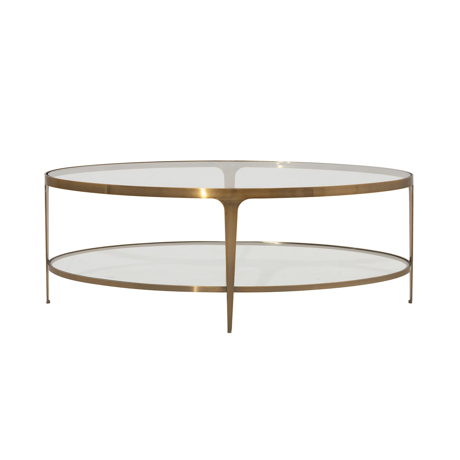 International For Worlds Away Two Tier Glass Top Oval Coffee Table In Antique Brass (Worlds Away)