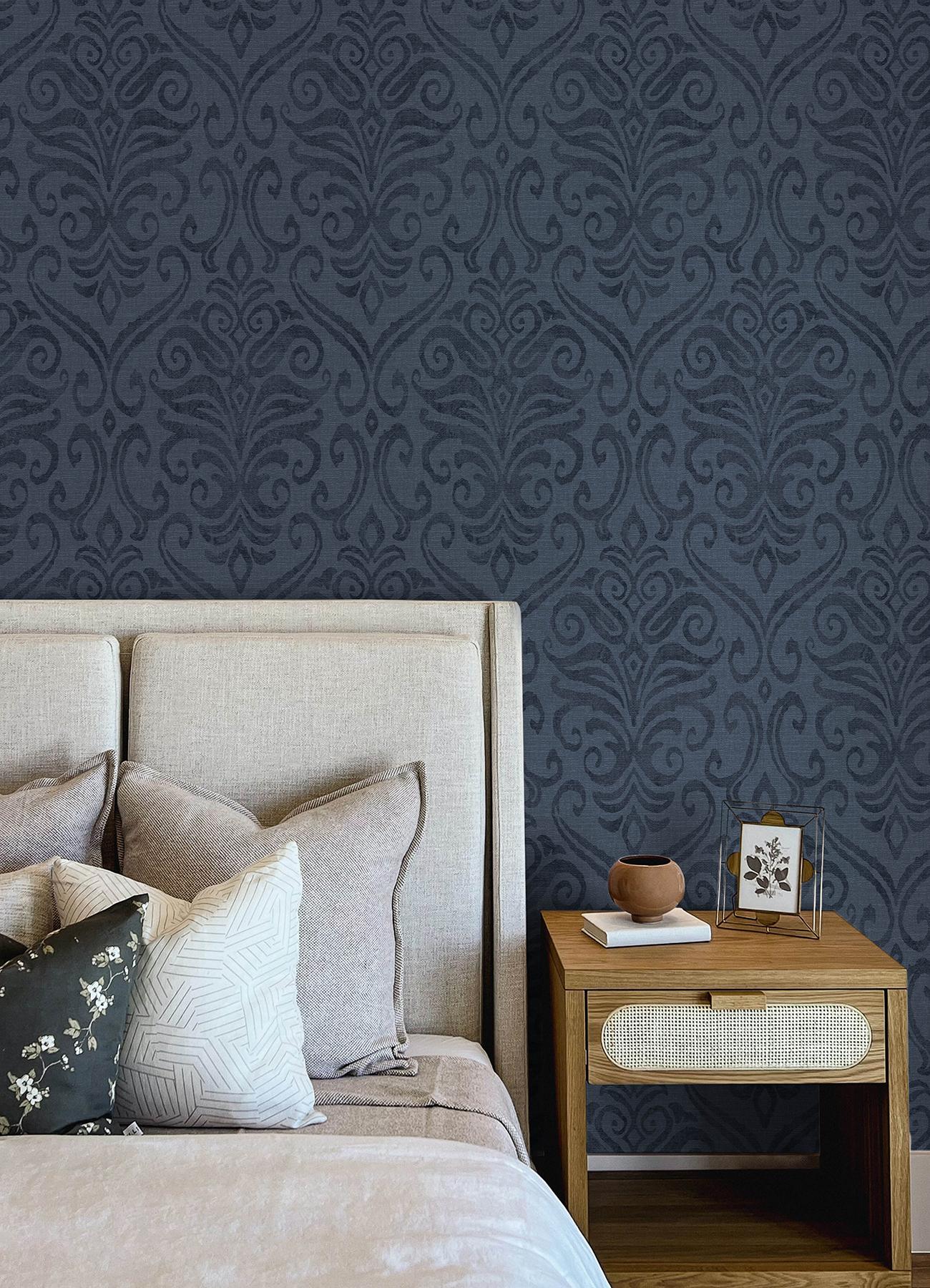 International For York Adavu Blue Damask Wallpaper (York)