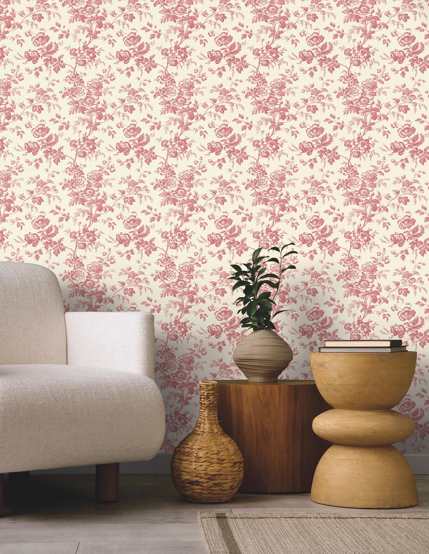 Shipping For York Wallcoverings Anemone Toile French Red Wallpaper (York Wallcoverings)