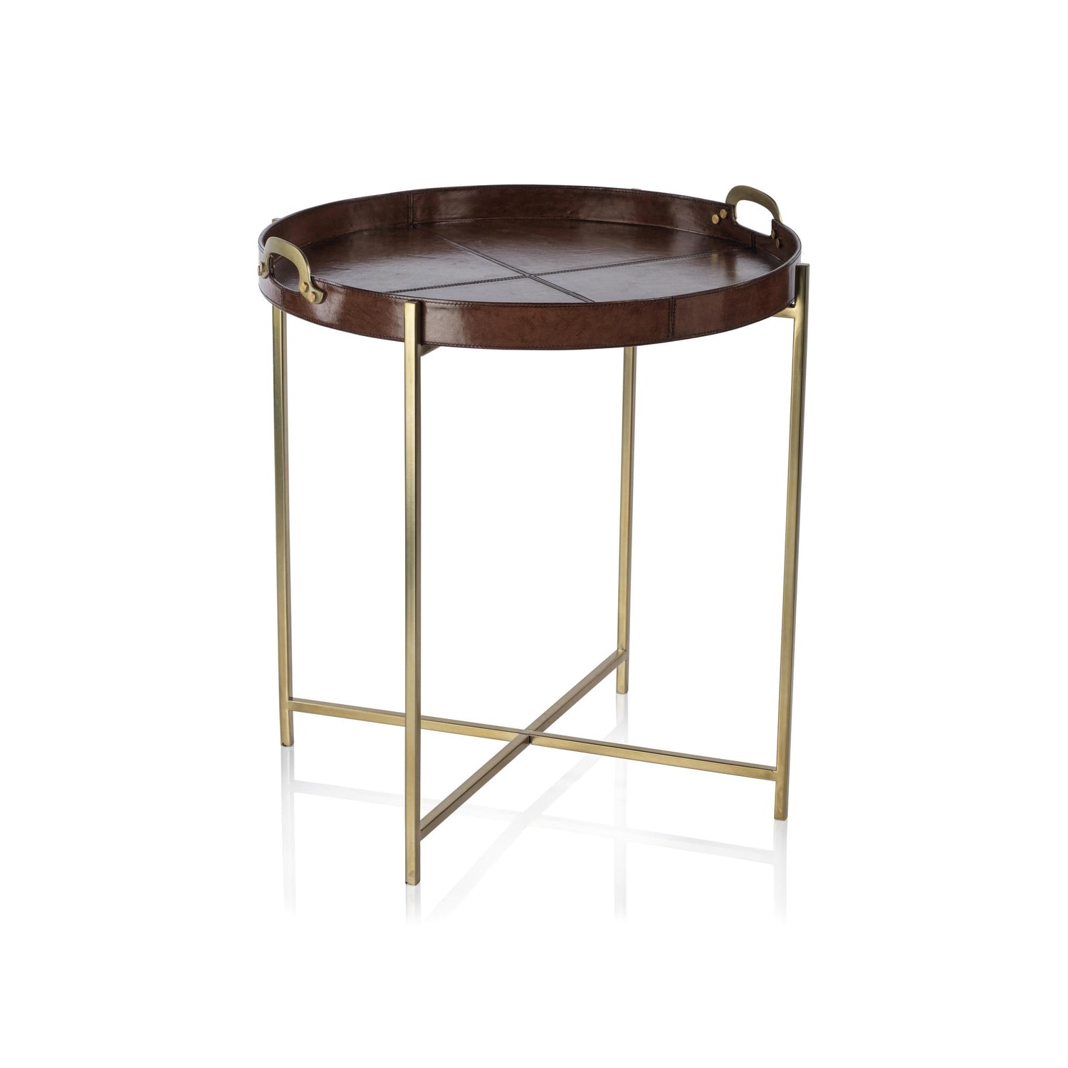 International For Zodax Tan Harlow Leather With Brass Handles Round Tray On Stand (Zodax)